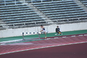 | ●渡辺智(男子3000mSC/9.33.11)のコメント 「教育実習もあり、十分な練習はすることはできなかったが何とか3000mSCに優勝することができた。実習中でも気持ちを常に陸上に傾けていたのが良かったのだと思う。しかし、タイムは悪かったので、次の大会では自分の目指すタイムで走れるように、走り込みたい。」 ●千葉(男子走高跳/2m10)のコメント 「今回の総体では、昨日の反省をなんとか形にしようと思って出場しました。その結果なんとか自分で久しぶりにいい感じの助走から跳躍までの流れがでてきたのでちょっとほっとすることができてよかったです。」 ●池田(女子200m/25.16)のコメント 「200mは、どんなふうに走りのかわからなかったのですが、先生にポイントを教えてもらったら、スムーズに走れました。今度は、今季最後の試合の七種の200mで頑張ります!」 |