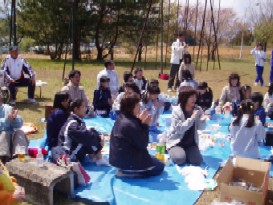 | 4/25 花見/福島大学グラウンド 暖かい春の日差しを浴びながらグラウンドで花見が開催されました。 お花見は楽しかったかな? |