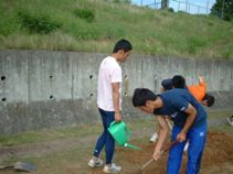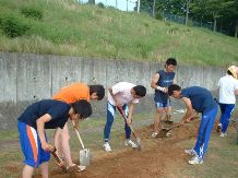 | ヒマワリ植え(5/30) 5月の終わりには1・2年生でホームストレート沿いにヒマワリの種を植えました。 ![]() ![]() ![]() すごく暑い日でしたがみんなで汗水流してヒマワリの種を植えました。来週号でヒマワリの今の状況をお知らせしたいと思います。グングン伸びろぉ〜!! |