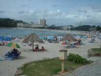 出羽靖弘です。僕は和歌山県の出身です。和歌山に来る機会があれば是非一度はたずねてみてくださいという場所を紹介しようと思います。まずこれは熊野本宮大社です。今年の7月7日に世界遺産に登録されました。毎年初詣に大勢の参拝客が訪れます。 これは、白良浜です。毎年夏場全国から100万人の海水浴客でにぎわいます。あのドラマ「グッドラック」のラストシーンもここで撮影していました。 |