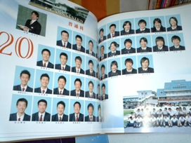 思っていたより片付いていますね。 「思っていたよりって何ですか〜!?いつ誰が来てもいいようにしっかり部屋は片付けていますよ〜」 これはこれは、どうもすみませんm(__)m ん、これは以前誰かのお部屋にお邪魔したときにも見たような...しかも「たまごっち」まで。 「たぶんめちゃめちゃご近所に住んでる人の部屋だと思います。ちょっと飽きやすいところがあるんで両方ともブームは短かったんですよ。」 「はい、私の顔はこの写真だと小さすぎて見えないんですけど...」 20組!!ものすごい生徒数ですね! 「全部で25クラスあるんですよ。人多すぎるんで3年間しゃべったことない人とかたくさんいたと思います」 |