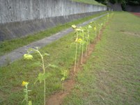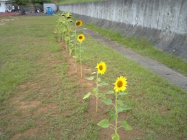 | 今週は晴れの日が続かず、くもりの日が多かったのでひまわりもかわいそうでした。 花が咲いているものはやっぱり下を向いているものが大体なのですがその中でもしっかり前を向いて咲いている強い花もあるようです。 今週は雨も降ったりしたので水の方はあまり心配しなくても大丈夫なのかなと思います。 こちらは花が小さいものが多く、栄養が足りていないように見えます。太陽が出るだけでも違うと思いますが、来週は台風が来たりと天気が悪くなりそうです。頑張れヒマワリ!! |