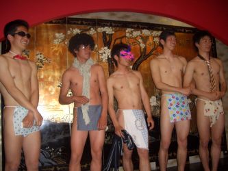 1・2年生による一発芸。はさみで切っても、「切れてな〜い」ふんどし軍団です |