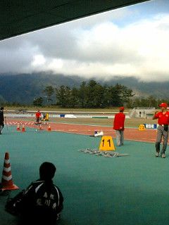 会場は、福島国体で使用されたあづま陸上競技場でした。シーズン初の大会を、このような立派な競技場で行えるのはとても嬉しいことです。第一日目の今日は、天気もよく、春らしい気候の中で行うことができました。ここには写っていませんが、競技場の周りには満開の桜の樹が沢山植えてあり、とても綺麗でした。 | ||||||||||||||||||