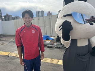 最後に、1年の亀田に話を聞いてみました! CMダッシュを走ってみてどうでしたか? 亀田「今回は初めて『ももりんダッシュNO.1』というイベントのお手伝いをさせていただきました。ありがたいことに、僕は『CMダッシュ』という枠で出場させていただき、憧れの先輩・Nさんと生き残りをかけた勝負をしました。CMダッシュでは、それぞれスポンサーさんのゼッケンを背負い、勝てば報酬と宣伝ができるという、とてもワクワクするルールになっています。