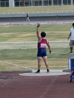 | 4年の米澤に話を聞きました。 今大会はいかがでしたか? 米澤「東海選手権で砲丸投げに出場しました。気温は40℃近く、かなり厳しいコンディションで、暑熱対策として予選が3投から2投しか投げられなくなったりしましたが、特に焦ることもなく日陰を利用してアップをしたり、氷を大量に使ってこまめに冷やしたりなどして対策していました」想定外の出来事にも臨機応変に対応することができたのですね! 「本番は自分の投げができずに終わってしまいましたが、東海地方で行う最後の大会かつ初めて三重で砲丸を投げることができて楽しく競技をすることができました。13m以上を安定して投げていかないと話にならないので秋シーズンに向けて頑張ります」 三重で投げた経験はきっと次に活きるはずです! ありがとうございました! |