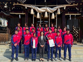 女子主将の進藤に話を聞きました! 必勝祈願はどうでしたか? 進藤「福島稲荷神社で必勝祈願を行いました。今年のチームの目標は『東北インカレ男女総合3位以上、国公立男女総合2位以上』です。神社で目標をあらためて宣言したことで、自分のできることを精一杯やっていこうと気持ちが引き締まりました」今シーズンはどのように臨んでいきたいですか? 「今年は順位の目標に加えて、パフォーマンス率100%の目標もあります。選手それぞれ個々の目標もあると思うので、チーム目標・個人の目標それぞれ達成するために全員で頑張っていきたいです。まだチームとしては発展途上ではありますが、このチームでシーズンを駆け抜けられるように、私自身も行動と結果で示せる選手を目指したいと思います。まずは2ヶ月先の東北インカレに向けていい流れを作りたいです」 チーム全体でいい流れを作っていきましょう! ありがとうございました! |