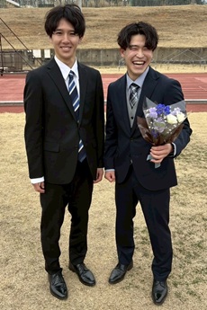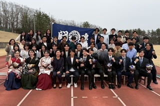 | 次に、加藤に話を聞きました! ご卒業おめでとうございます! 加藤「3月25日に学位授与式を行い、その後陸上競技部の卒部式を行いました。吉田監督、蓮沼先生、4年生、1-3年生の後輩達とも会うのが久しぶりだったので、とても緊張しました。まず初めに、吉田監督、蓮沼先生、4年間ご指導・ご支援本当にありがとうございました。陸上競技部の活動を通して、人としても競技者としても学ぶことが多く、成長することができたと思います」卒部式に参加してどうでしたか? 「壇上に立って、最後のメッセージを伝える時、緊張もありましたが、本当にこれで福島大学陸上競技部としての活動は最後になるのだと、寂しい気持ちと頑張って良かったという達成感がありました。4年生はもちろん、1~3年生、先輩方には感謝の気持ちでいっぱいです。混成競技の選手として、たくさんアドバイスをくださったり、教員採用試験の試験勉強期間中にたくさん声をかけたりしてくれたりして、多くの方がサポートしてくださいました。本当に皆さんありがとうございました。これからも皆さんのことをずっと応援しています。ともに陸上競技ができて幸せでした。苦しいことも楽しいこともたくさんあった4年間ですが、とても濃い時間を過ごすことができ、学んだことを今後の人生でも活かせる場面が必ずあると思います。この陸上競技部での経験を今後の人生に活かしていきます」 部員全員がこれからもご活躍を応援しています! ありがとうございました! |