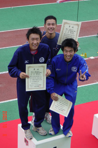 ●渡辺智のコメント 「2種目に出場したが、3000mSCでは優勝、5000mでは6位という結果だった。今の自分の力は全て出すことができたと思うし、少数での参加ではあったが、対校戦であるという意識の中で競技できたことはよかったと思う。また、この大会に参加してみて、普段マネージャーさんが行なっている仕事を少し経験する機会があったが、自分が普段いかに恵まれた環境の中で試合にのぞむことができているかを知ることができた。そういった事もふまえると、この大会に参加したことで得たものは多かった。」 ●沼田のコメント 「今回の試合は1.55.02の自己ベストでしたが、ラストで抜かれてしまい勝てなかったのが残念でした。負けは負けなんで勝てるレースをしたいです。」 |