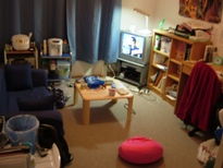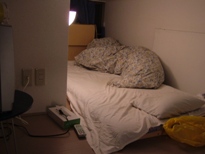 ロフトもあるんですね。どうりで天井が高いわけですね。 「ハイ。いつもロフトで寝ています。ただ欠点があって、クーラーがあんまりあたらないので夏は結構苦労します。」 虫がきたりクーラーがあたらなかったりといろいろ大変ですね。 これは一体なんですか? 「お香です。たまに炊いています。高校のときから集めてますが、すごく落ち着くので皆さんもやってみるといいですよ。」 |