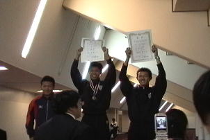 ![]() 男子10種競技で自己ベストを更新し、見事優勝した渡辺雅(真ん中) |