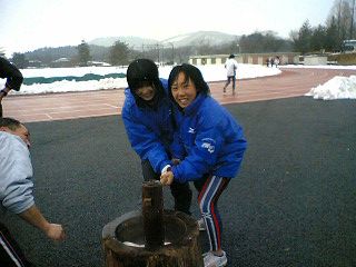 | テストも終わり、後は単位が取れていることを祈るのみです。そしていよいよ春休み!しっかり練習して来季に備えたいです。ホームページの仕事も頑張ってよいものにしていきたいです。 佐藤 今週は餅つきがあり、おいしいお餅を頂けた上、写真もいっぱい撮れて、いいホームページ作りができました。青木 |