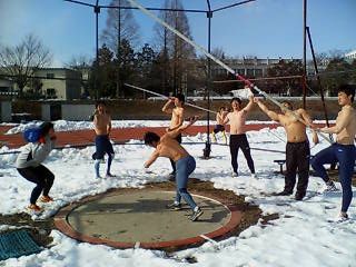 ブロック紹介も第4回目となりました。今回紹介するのは、投擲・混成ブロックです。 ブロック長・大原のコメント強靭な肉体、揺るぎない心を兼ね備えた美男美女集団『投・混ブロック』。練習時間・量はおそらく部内で一番な努力家ばかり。その甲斐もあって自己ベストも連発しております。紛れもなく僕らずっと全力少年(青年)!あの子の瞳にAddiction!陸上競技にAddiction!3度のめしにAddiction!今年も大暴れしますよ!ご期待あれ☆ちなみにこの写真を撮った日は1℃あるかないかでした(笑) |