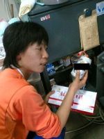 華麗に?仕事をこなすOGの久保倉さんです。意欲満々の表情ですね。奥の笑顔の坂水さんは・・。 |