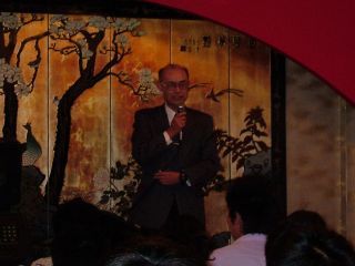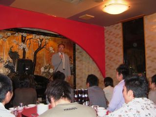 ![]() 宴の前にまず川本先生から ありがたいお言葉をいただきました。 |