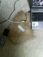 さっきから気になっていたんですがこの茶色いシミは何ですか?「これは私が入れたコーヒーを友人が過ってこぼしてとれなくなったシミです。」通販とかでよく売っているシミがよくとれるよ。みたいな商品の購入をお勧めします。 |