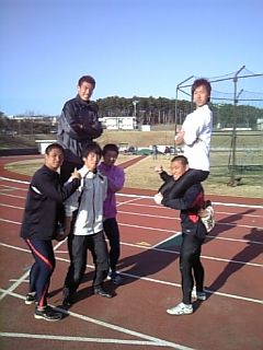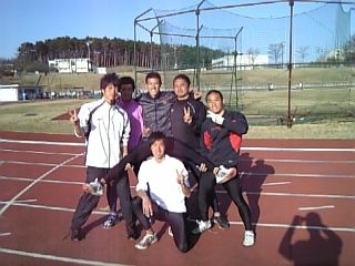| Q:久しぶりにグラウンドに来てどんな印象を受けましたか? A:なつかしいというのが第一印象。一年経って、学年がそれぞれ一つ上がって、みんなそれぞれ成長しをていて、一年という月日は早いと感じた。 Q:部の雰囲気はどんな感じですか? A:自分達が幹部交代して間もない時のことを思い出しました。3年生(2006年度から4年生)を中心に目標に向かって頑張って欲しい!! Q:4月から今と別な場所に配属になると聞いたのですが、どこの配属になったのですか? A:自衛隊体育学校に配属になりました。実際は10月から練習に行っていました。そこで初めて練習をした時に、今まで陸上競技ができなくて、久しぶりにできたことにありがたみを覚えています。そこでは陸上競技に専念できるのでとても嬉しいです |