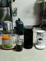 これは何ですか?「これは左からフードプロセッサー、コーヒーメーカー、ミキサーです。これらはいわば私にとっての三種の神器なんです。」 ほぉそれはすごいですねぇ。でも僕は料理に興味にないので三種の神器より後ろに見える布団乾燥機の方が気になります。 |