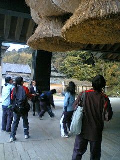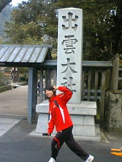 | 大会前日、島根陸協の方が選手を出雲大社に連れて行ってくださいました。出雲大社は、とにかく建物が大きい!歴史を感じさせる建物の数々に、思わずため息がでました。 《以下、順に写真の解説です》 |