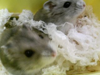 あらあら、これはこれは二匹でベッドインですか?おあついですねぇ^^ 「いやいや仲よすぎですよ・・。子ども生まれちゃいますよ。」 えぇこれは雄と雌なんですか!? 「はい、つがいで買ってこられました。もし生まれたら欲しい人は連絡下さい。」 そうですか、じゃあ次の今週のペット第二回はN川ハムの里親募集になりそうですね。ちなみにこの二匹の名前はなんていうんですか? 「決まってません。誰かいい名前をつけてください。」 だそうなので名前を募集します。僕は右ハム、左ハムがいいと思います。 |
