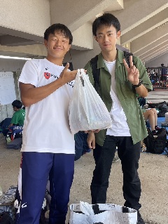 次に、1年の古川に話を聞きました! 今大会の結果を教えてください! 古川「今大会は男子400mHに出場し、54秒32で優勝という結果でした。タイムを見ると、全然物足りなく、自分の実力不足が目に見えたレースとなりましたが、今までで1番大きい声援のおかげで楽しく走ることができ、思い出深い大会となりました。たっくさんの声援ありがとうございました!!」優勝おめでとうございます!! レースの内容はいかがでしたか? 「予選では、集中が足りず自分の走りが出来なかったので、決勝では絶対に勝つという強い気持ちを持って走りました。決勝のレースで良かったところは、前半肩を落として脱力して走れたことと、5台目からしっかり切り替えられたことです。前半脱力して走れたことで、後半も垂れずに跳ぶことが出来ました。一方、ハードルを跳ぶ時に浮いてしまい、時間ロスになった場面があったので、上ではなく前に踏み切るようにしていきたいです。まず、そもそもの走力が全く足りないので、これからの練習でしっかり走力をつけるとともに、逆足でも跳べるようにしたいと思います」 練習を積み重ねていきましょう! ありがとうございました! |
