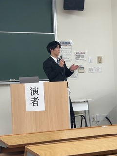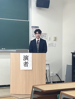 最後に、「時代が求めるスポーツヒーロー像の変容」というテーマの発表をした、米澤に話を聞きました。 米澤「最初は研究に全く興味がありませんでしたが、スポーツヒーローについて研究をしていくことで、メディアとスポーツの関係性を深く知ることができたので、とても貴重な経験となりました。卒業論文発表会では、最後の授業なんだなと思い、少し緊張感ありましたが、前日にアベンジャーズ全作品を見て気分が上がっていたおかげで楽しく発表することができ、10分ちょうどに発表をし終えて、質問にも答えることができ、無事に終えることができました」 良い発表ができたようですね! 今回の発表で感じたことはありますか? 「陸上競技部の後輩ちゃんから質問が来た時はとても意欲を感じたので、嬉しく思いました。質問してくれた2人ありがとう。 今回発表してみて感じたことは、人前で話すことに慣れてきて得意になってきたなと感じました。これから大いに活躍する強みだと思うので、社会人でも発揮していこうと思います」 強みを手に入れた良い経験でしたね! ありがとうございました! |