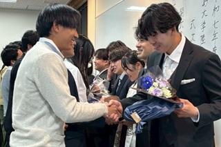 | 福島大学では3月25日(水)に学位授与式が行われ、4年生がそれぞれの新たな道へと歩み始めました。これまでチームを盛り上げ続けてくださった先輩方へ卒部式を行いました。式ではこれまでの競技生活を振り返りながら、後輩への熱いメッセージや今後の目標などについて語っていただきました。そして4年生の方々に卒部式の感想を聞いてみました。早速話を聞いてみましょう! | |