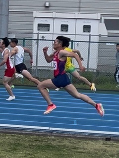 次に、3年の中山に話を聞きました。 試合を振り返って、何を感じましたか? 中山「今回の100mでは、スタートから中間疾走にかけての『前傾姿勢の維持』と、その姿勢を保ったまま『地面に乗り込み加速していくこと』を最大のテーマとしてレースに臨みました。実際の走りを振り返ると、スタート直後の最初の一歩で体が浮き上がってしまう癖を抑え、いつもより低く鋭い飛び出しができた点は大きな収穫でした。これまでの課題であった『浮き』を意識的にコントロールできたことで、加速への入り方は改善が見えたと感じています」 成長を感じられるレースになったのですね! 何か課題は見つかりましたか? 「加速局面において腰が浮き気味になってしまい、結果として重心がスムーズに前方へ移動する『乗り込み』が十分に行えませんでした。今後は、股関節からしっかり地面を捉える乗り込みの感覚と、体幹の軸をこれまで以上に意識し、スタート直後のパワーをロスなくスピードに変換できるよう、基礎から強化し直す必要があると感じています。 また、後半の局面では地面に対して効率よく力を加えることができず、走りに粘りを欠いてしまいました。向かい風3.3mという厳しい条件下であったからこそ、力みに頼らず地面を叩く技術の差が顕著に出た結果だと受け止めています」 収穫と課題が明確になったレース、今後に活かしていきましょう! ありがとうございました! |