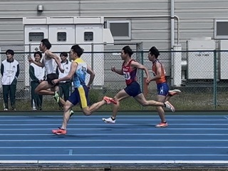| 次に、3年の手間本に話を聞きました! 仙台大学競技会はどうでしたか? 手間本「今回は今シーズン初のレースでした。レースの目標として前半からしっかり出し切ることを意識しました。スタートから前半200mのカーブ入り、直線では落ち着いて走ることができました。200m通過後徐々にあげていくことができカーブ抜けまで安定させ走ることが出来た点が良かったです」次に向けて課題や目標は何ですか? 「基礎スピードがまだ足りず前半では周りと差ができてしまう点とラストの直線で足が流れていた点は課題なので今後の練習などで磨いていきたいと思います。今後のレースでも記録を更新し、今年は自己ベストを更新します」 今年は自己ベスト更新ですね! ありがとうございました! |
